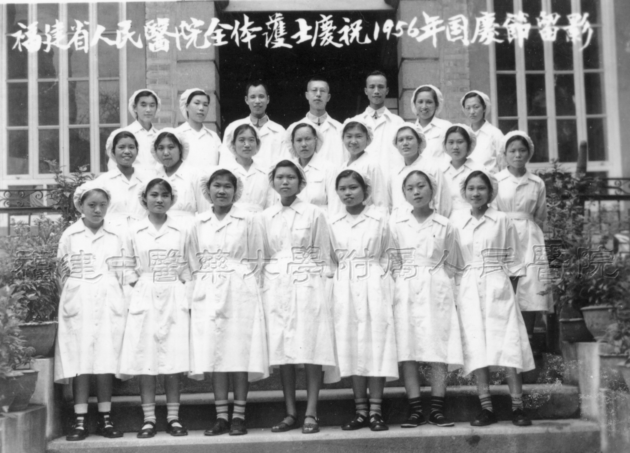 1958年交通路上省人民醫(yī)院門(mén)診樓、辦公樓、病房樓前合影