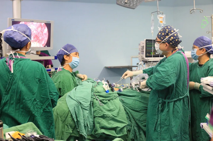 ▲婦科陳捷主任醫(yī)師團(tuán)隊(duì)行腹腔鏡下陰道成形術(shù)