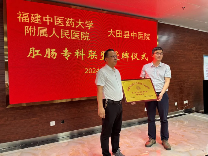 2024年4月19日上午,福建中醫(yī)藥大學(xué)附屬人民醫(yī)院與大田縣中醫(yī)院“肛腸科專(zhuān)科聯(lián)盟”授牌儀式在大田縣中醫(yī)院順利舉行。大田縣衛(wèi)健局黨組書(shū)記、局長(zhǎng)涂振鵬,大田縣總醫(yī)院院長(zhǎng)、大田縣中醫(yī)院班子成員、相關(guān)科室負(fù)責(zé)人參加活動(dòng)。