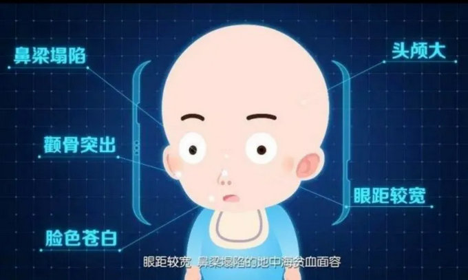 重型地貧包括重型α地貧和重型β地貧,重型α地貧又稱巴氏水腫胎(即Hb Bart 兒水腫綜合征),胎兒重度貧血、全身水腫、肝脾腫大,常于孕晚期胎死宮內(nèi)或出生后數(shù)小時(shí)內(nèi)死亡。重型β地貧通常在出生后3至6個(gè)月開始出現(xiàn)癥狀,多表現(xiàn)為重度貧血、面色蒼白、肝脾腫大、黃疸、發(fā)育不良,具有典型的地貧特殊面容:頭顱變大、額部隆起、顴骨突出、鼻梁塌陷、眼距增寬等,如不進(jìn)行規(guī)范性輸血和排鐵治療,多在未成年前死亡。