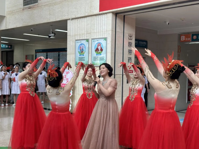 活動伊始,一曲《萬疆》在門診大廳悠揚響起,身著舞衣的護(hù)士姐妹隨著音樂的節(jié)奏翩翩起舞,通過優(yōu)美的身姿與嘹亮的歌聲,展現(xiàn)華夏大地的壯麗與遼闊。
