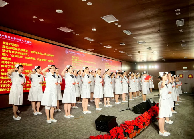 護(hù)理部主任黃惠榕帶領(lǐng)全體護(hù)士代表進(jìn)行莊嚴(yán)宣誓,為活動拉開序幕。