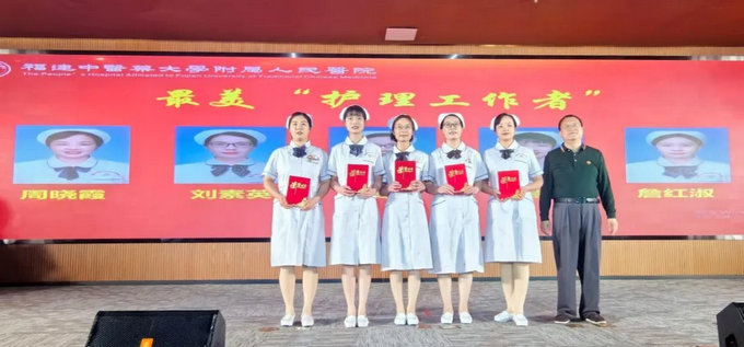 教授文丹為最美“護(hù)理工作者”:周曉霞、劉素英、蔣賽珍、黃碧鈺、詹紅淑頒發(fā)證書
