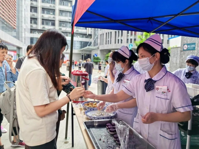 與此同時(shí),養(yǎng)生藥膳的制作及品嘗區(qū)域也吸引了大量群眾的關(guān)注。醫(yī)院專(zhuān)家團(tuán)隊(duì)結(jié)合季節(jié)特點(diǎn)與人體需求,精心準(zhǔn)備了多款養(yǎng)生藥膳,包括滋補(bǔ)的何首烏豆蔻蛋、調(diào)理脾胃的山藥紫薯健脾糕、生津止渴的玉竹烏梅飲等。讓現(xiàn)場(chǎng)群眾在品嘗美食的同時(shí),也了解中醫(yī)食療的理念與方法。