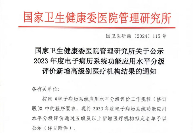 日前,國家衛(wèi)生健康委醫(yī)院管理研究所公示了2023年度電子病歷系統(tǒng)功能應用水平分級評價新增高級別醫(yī)療機構結果,福建省共有5家醫(yī)院通過國家評審,我院成為福建省首家順利通過電子病歷五級評審的三級甲等中醫(yī)院,標志著醫(yī)院信息化建設邁上新臺階。