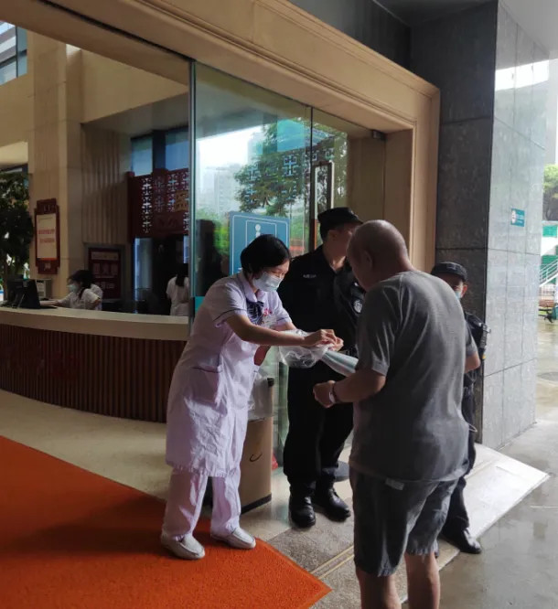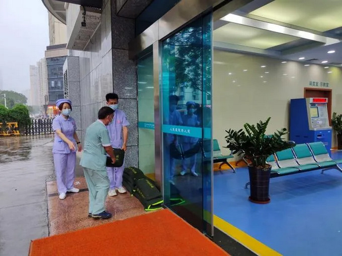 門診部主任一早帶領(lǐng)工作人員,多次巡查門診區(qū)域,做好防風(fēng)防汛應(yīng)對措施,并且安排好老專家的停診工作。發(fā)現(xiàn)雨勢逐漸變大時(shí),門診部迅速安排人員在門診大廳入口處發(fā)放雨傘袋,保持地板干燥,確?;颊甙踩?。