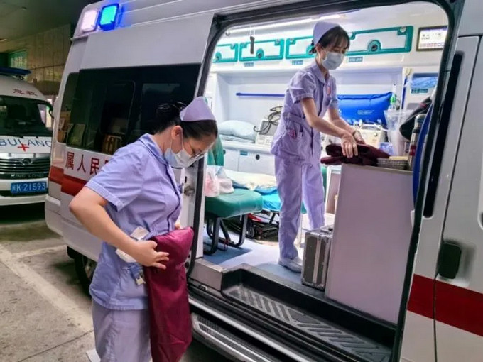 急診科工作人員正在有條不紊地加強(qiáng)救護(hù)車抗臺物資儲備