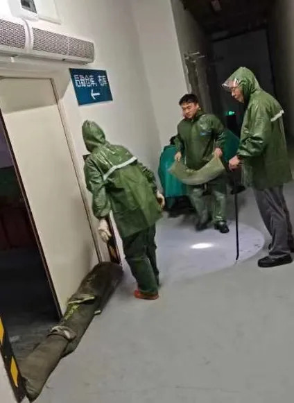 為防止雨水灌入和積水倒灌,藥學(xué)部還在藥庫的進(jìn)出口堆置了防水沙袋,確保藥品安全。