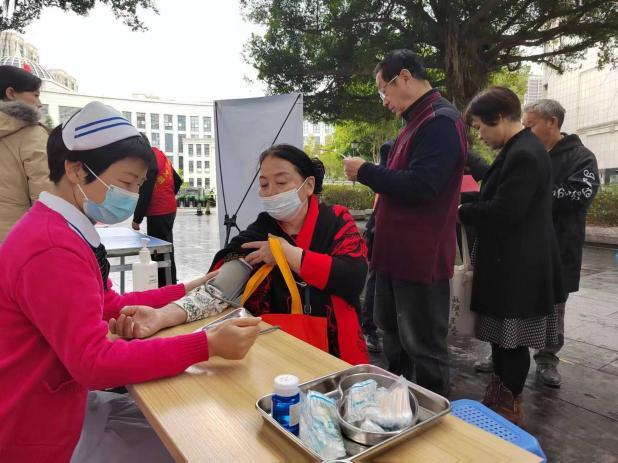 醫(yī)護志愿者們?yōu)樯鐓^(qū)居民免費測量血壓、血糖,根據(jù)老年人現(xiàn)場測量結果,有針對性地給予調養(yǎng)指導和建議,并對中醫(yī)養(yǎng)生、保健治療等問題進行答疑解惑,教授社區(qū)群眾八段錦養(yǎng)生操,開展耳穴埋豆等中醫(yī)護理治療服務,受到廣大群眾的熱情歡迎和稱贊。