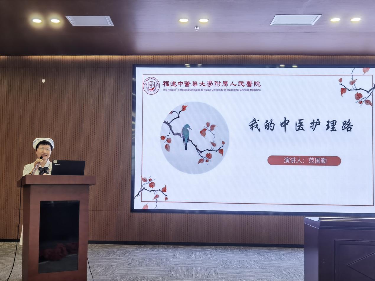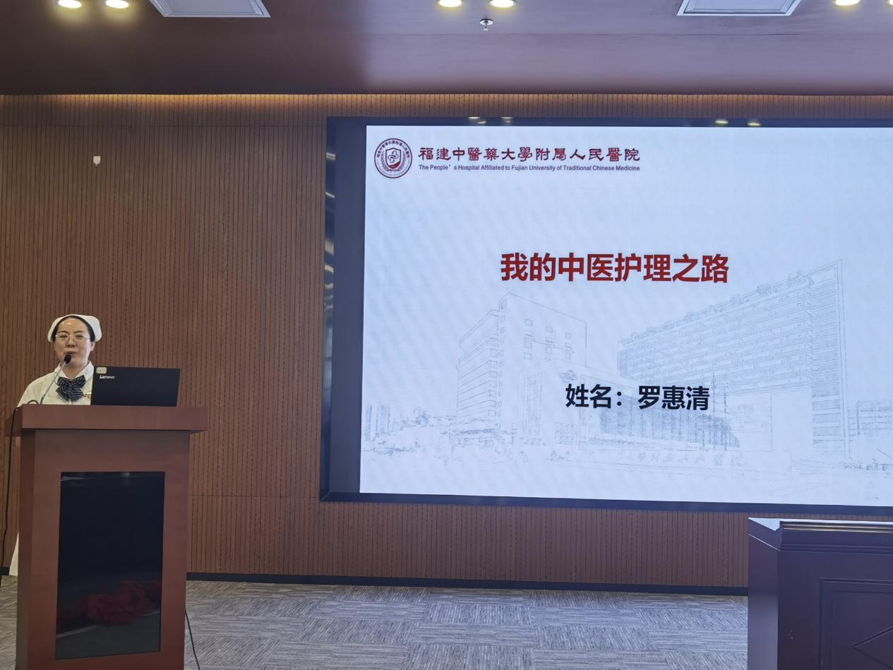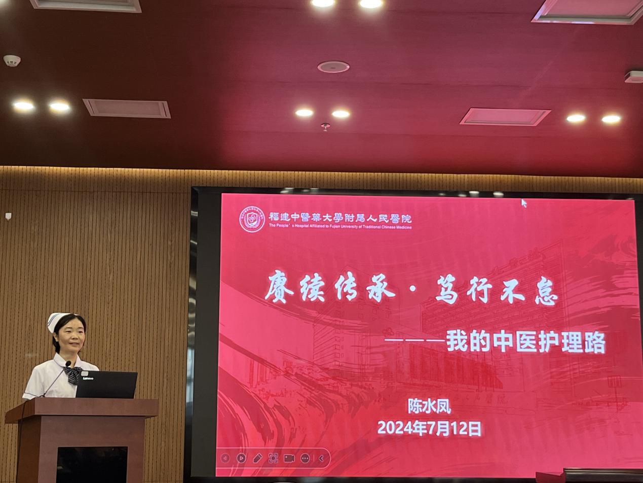 呼吸科護士長陳水鳳以“賡續(xù)傳承,篤行不怠”為題,向大家分享了她從一名中醫(yī)院校畢業(yè)的學(xué)生再到全國中醫(yī)護理骨干人才成長經(jīng)歷,她將外出進修中學(xué)到的先進經(jīng)驗和腕踝針、平衡火罐、蠟療等中醫(yī)適宜技術(shù)融入醫(yī)院護理工作當(dāng)中,為群眾提供更加優(yōu)質(zhì)的護理服務(wù),真正做到了“走出去,帶回來”。