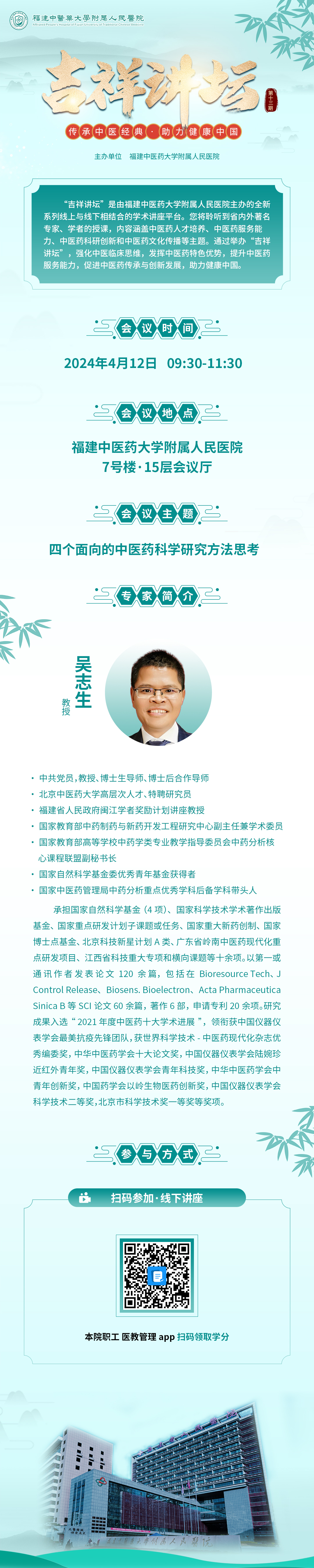 吉祥講壇|第十三期:吳志生教授談四個(gè)面向的中醫(yī)藥科學(xué)研究方法思考