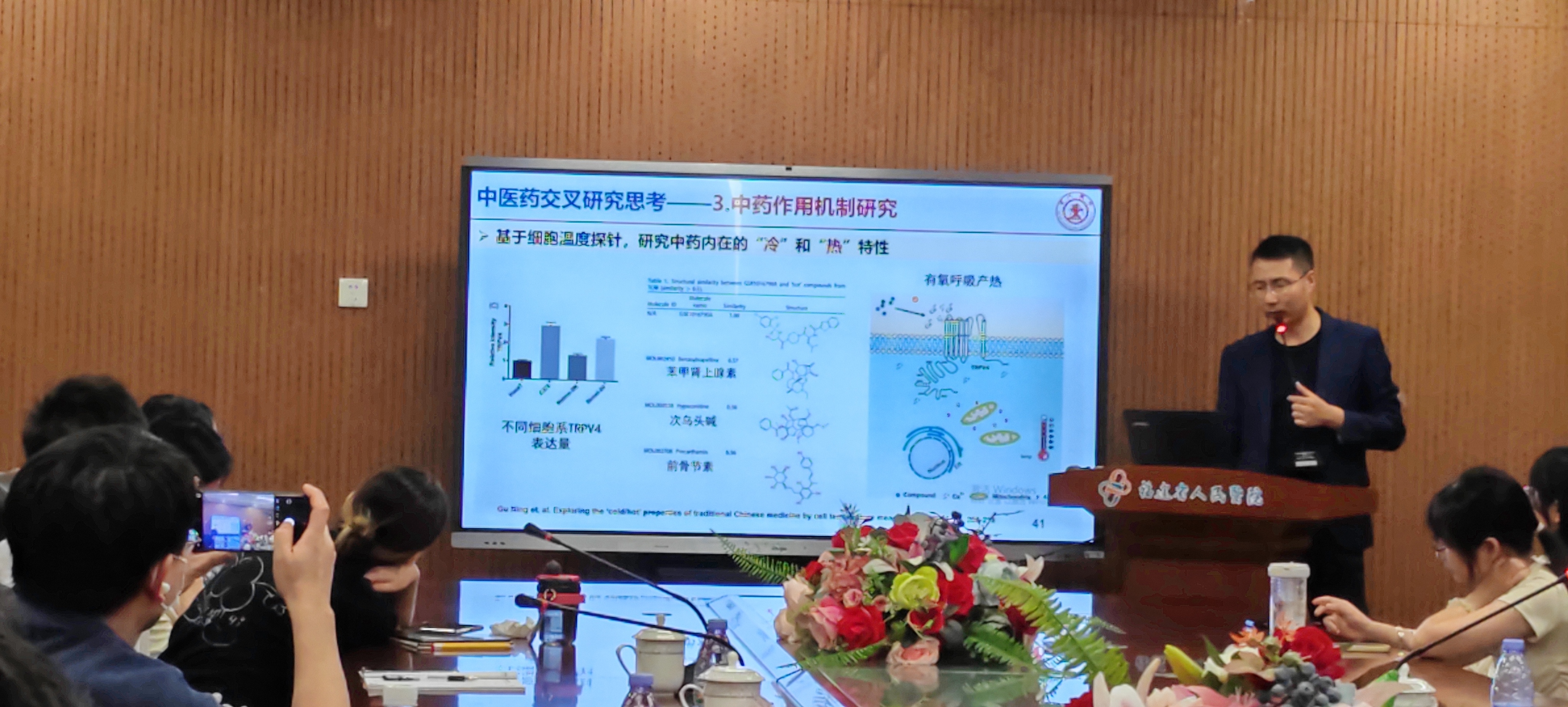 會上,靳教授從光功能材料研究背景、增強(qiáng)分子吸收促腫瘤成像及治療、熱聚集增強(qiáng)藥物腫瘤富集、靈敏度增強(qiáng)型細(xì)胞溫度探針開發(fā)等方面,由淺入深地介紹了他們團(tuán)隊在該領(lǐng)域的研究概況;并以其團(tuán)隊研發(fā)的細(xì)胞溫度探針和仿艾灸智能化系統(tǒng)為例,分享了中醫(yī)藥與材料科學(xué)交叉融合的成功經(jīng)驗。