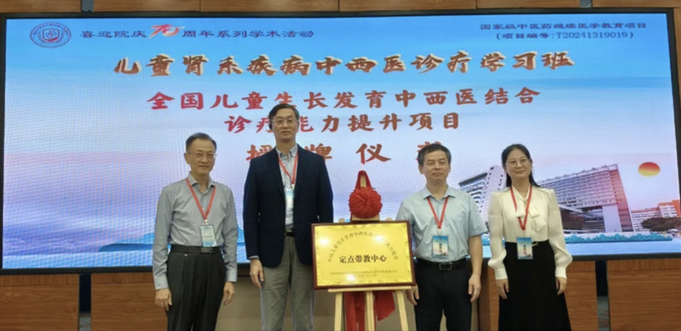 為充分發(fā)揮兒童生長(zhǎng)發(fā)育領(lǐng)域中醫(yī)與西醫(yī)的各自優(yōu)勢(shì),提升中西醫(yī)結(jié)合診療效果,由中國(guó)中西醫(yī)結(jié)合學(xué)會(huì)兒科專業(yè)委員會(huì)生長(zhǎng)發(fā)育協(xié)作平臺(tái)、復(fù)旦大學(xué)附屬兒科醫(yī)院牽頭的“中國(guó)兒童生長(zhǎng)發(fā)育中西醫(yī)診療能力提升項(xiàng)目”,于2024年10月13日在福建省福州市舉行了全國(guó)兒童生長(zhǎng)發(fā)育中西醫(yī)結(jié)合診療能力提升項(xiàng)目落戶我院兒科的授牌儀式,這是對(duì)我院兒科兒童生長(zhǎng)發(fā)育診治能力的充分肯定。