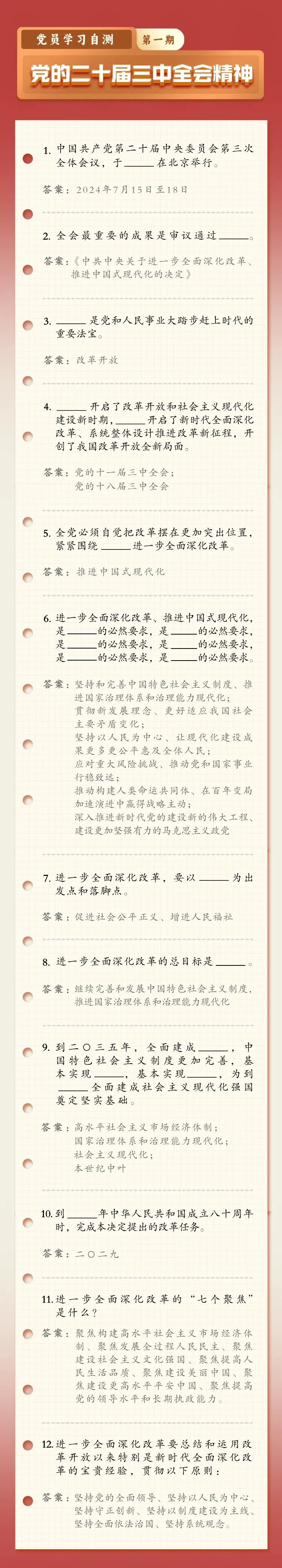 黨的二十屆三中全會(huì)精神學(xué)習(xí)自測(cè)(第一期)