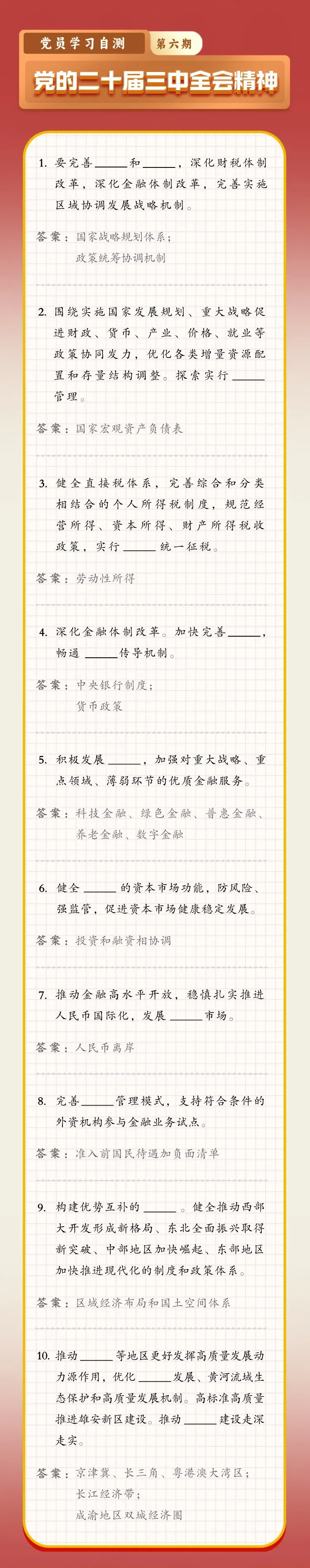 黨的二十屆三中全會(huì)精神學(xué)習(xí)自測(cè)(第六期)