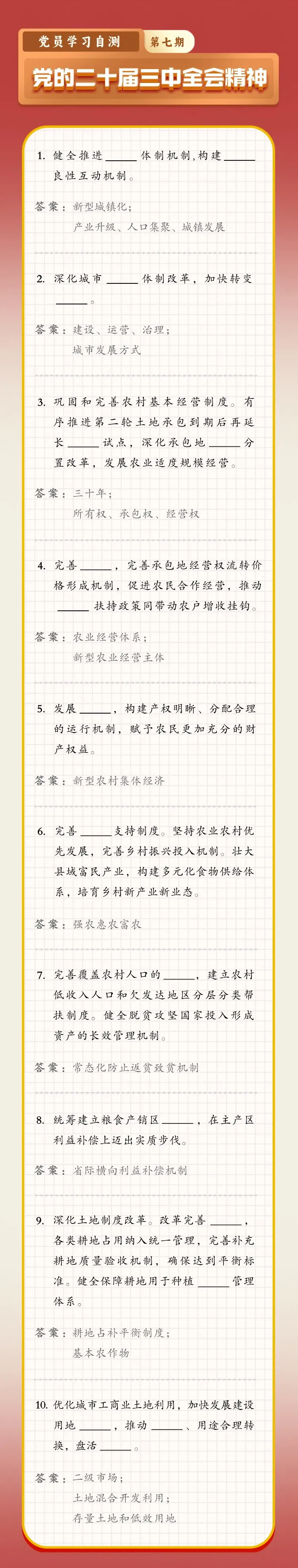 黨的二十屆三中全會精神學(xué)習(xí)自測(第七期)