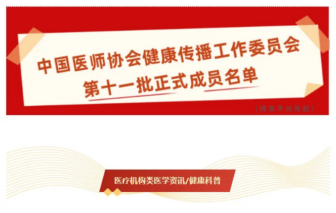 近日,中國(guó)醫(yī)師協(xié)會(huì)健康傳播工作委員會(huì)第十一批正式成員名單公布,福建中醫(yī)藥大學(xué)附屬人民醫(yī)院入選中國(guó)醫(yī)師協(xié)會(huì)健康傳播工作委員會(huì)正式成員名單。