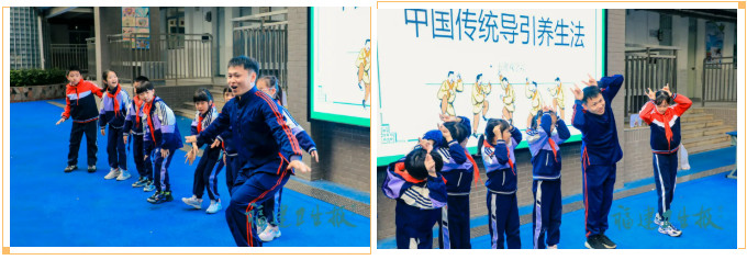 福建中醫(yī)藥大學(xué)附屬人民醫(yī)院黃承武醫(yī)生則帶著孩子們上了一堂不一樣的“體育課”。在他的帶教下,孩子們整齊劃一地練習(xí)“五禽戲”中的“鳥戲”,感受中國傳統(tǒng)導(dǎo)引術(shù)的養(yǎng)生之道。