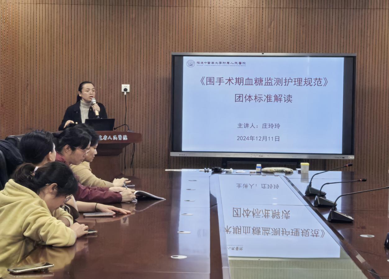莊玲玲督導(dǎo)進(jìn)行《圍手術(shù)期血糖監(jiān)測護(hù)理規(guī)范》的講座