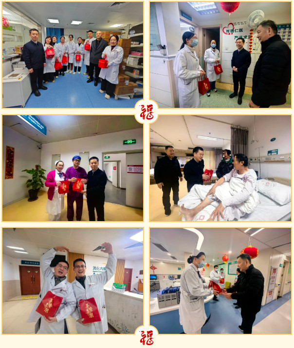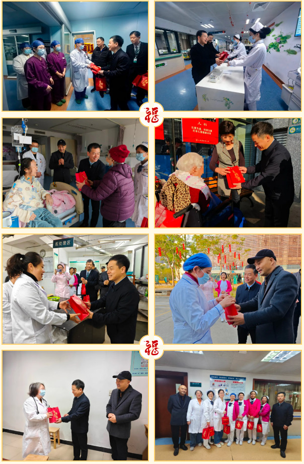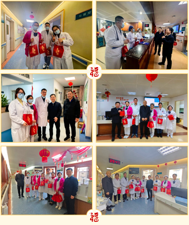 “祝你們巳巳如意!”院領(lǐng)導(dǎo)帶著滿載著祝福和關(guān)懷的慰問品,深入各個(gè)科室和病區(qū),向堅(jiān)守在崗位上的員工們表示親切的慰問和新春的祝福。每到一處,院領(lǐng)導(dǎo)與在崗員工們親切握手,詳細(xì)詢問他們的工作和生活情況,感謝他們?yōu)獒t(yī)院和患者的辛勤付出。同時(shí),院領(lǐng)導(dǎo)還鼓勵(lì)大家在新的一年里繼續(xù)發(fā)揚(yáng)“人民醫(yī)院為人民”的辦院宗旨,為醫(yī)院的發(fā)展和患者的健康作出更大貢獻(xiàn)。