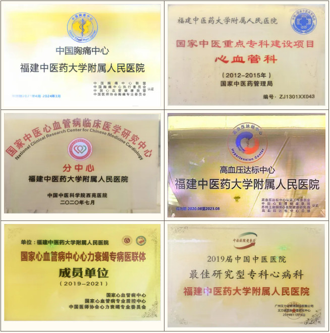 福建中醫(yī)藥大學附屬人民醫(yī)院(福建省人民醫(yī)院)心血管科, 是國家中醫(yī)藥管理局重點專科,福建省中西醫(yī)結(jié)合重點???,福建省“創(chuàng)雙高”重點???,國家標準版胸痛中心,國家標準版高血壓達標中心,國家中醫(yī)心血管病臨床醫(yī)學研究中心福建分中心,國家心血管病中心高血壓專病醫(yī)聯(lián)體的福州市分中心,是福建中醫(yī)藥大學中西醫(yī)結(jié)合博士、碩士培養(yǎng)點,福建省中醫(yī)、中西醫(yī)結(jié)合心血管科的龍頭。