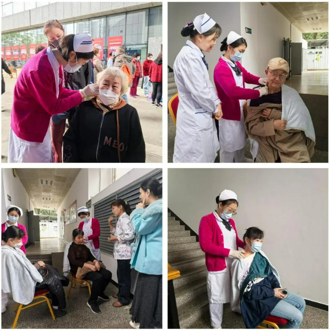 活動還涵蓋了中醫(yī)傳統(tǒng)特色療法體驗、養(yǎng)生藥膳制作及品嘗、中醫(yī)傳統(tǒng)養(yǎng)生保健操現(xiàn)場教學(xué)、急救知識教授以及發(fā)放健康教育宣傳單等多個項目,旨在為人民群眾提供豐富、專業(yè)的護(hù)理服務(wù)。