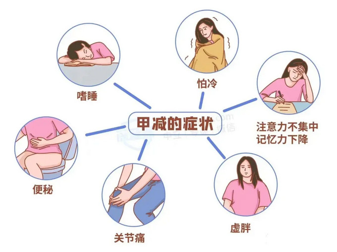 因甲狀腺激素不足引起的全身性疾病,剛開(kāi)始沒(méi)有癥狀,隨著病情深入會(huì)出現(xiàn)身體乏力、畏寒、反應(yīng)遲鈍、食欲減退、心率減慢等。長(zhǎng)期不治療會(huì)引發(fā)甲狀腺腫、心血管疾病、抑郁癥、周圍神經(jīng)病變、黏液性水腫昏迷等并發(fā)癥。