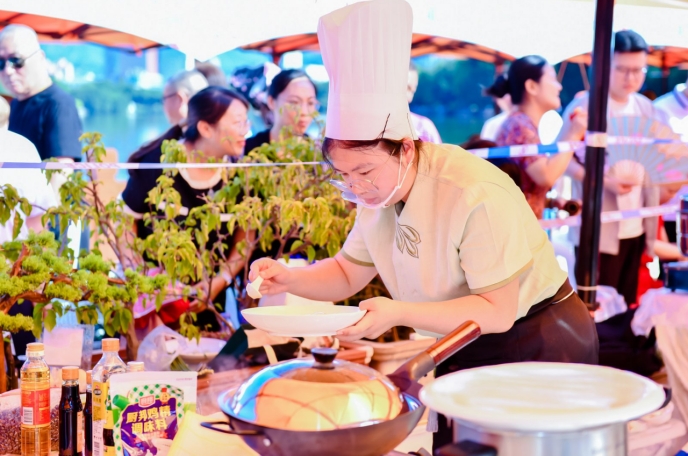 最引人注目的藥膳制作環(huán)節(jié),閩韻藥膳隊(duì)的三款作品盡顯巧思。“五彩山藥絲”以福建山藥為主材,搭配彩椒、海帶絲等,色彩明快如閩江春色,健脾養(yǎng)胃的功效與清新口感相得益彰;“百蓮蝦”融合沿海特產(chǎn)蝦肉與百合、金線蓮,造型似荷塘清景,兼顧補(bǔ)腎健脾與清心安神;“四神糕”則以蓮子、芡實(shí)等“藥食兩用”食材入膳,融入荔枝殼清熱的閩地智慧,軟糯口感中透著山水靈韻。