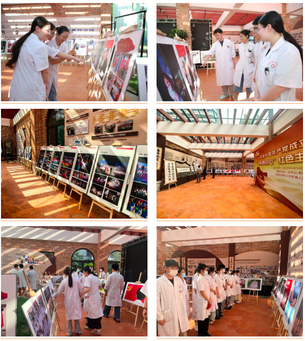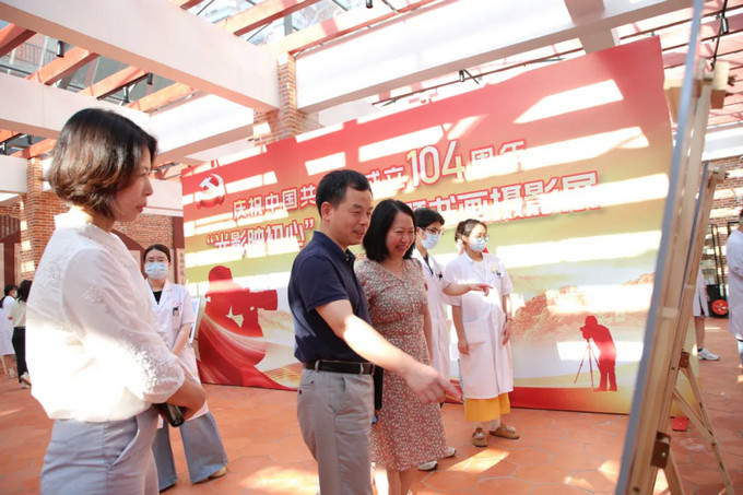 在隔壁2號廳,一場以“光影映初心”為主題的紅色攝影書畫展在這里悄然揭幕。本次展覽以“慶祝建黨”“醫(yī)者仁心”“醫(yī)院發(fā)展”“美好生活”為核心主題共展出104幅作品,旨在以藝術(shù)形式展現(xiàn)我院在黨建引領(lǐng)下的時(shí)代風(fēng)采,為黨的生日獻(xiàn)上最衷心的祝福。院領(lǐng)導(dǎo)及醫(yī)院職工共同觀看本次展覽。