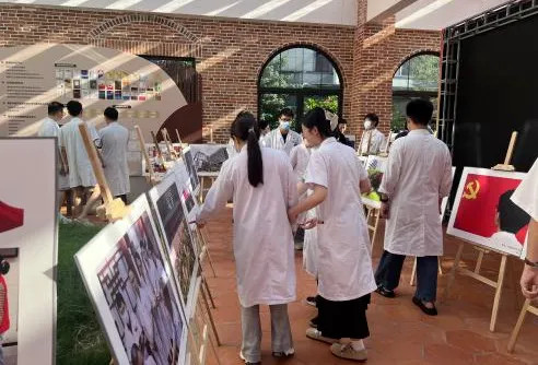 在隔壁展廳,一場紅色攝影書畫展在這里悄然揭幕。本次展覽以“慶祝建黨”“醫(yī)者仁心”“醫(yī)院發(fā)展”“美好生活”為核心主題共展出104幅作品,旨在以藝術(shù)形式展現(xiàn)我院在黨建引領(lǐng)下的時代風采,為黨的生日獻上最衷心的祝福。