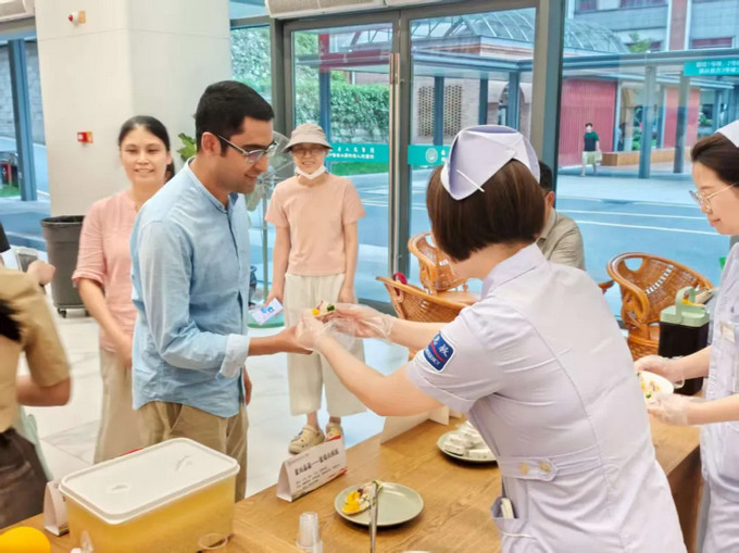 “So delicious!”來自巴基斯坦的友人用英文夸贊中醫(yī)藥膳的美味。一位阿姨笑道:“比奶茶甜點要健康,吃出了養(yǎng)生儀式感!”