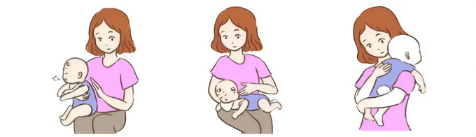 ?輕輕將寶寶抱起,使其頭部搭在母親肩膀上;
