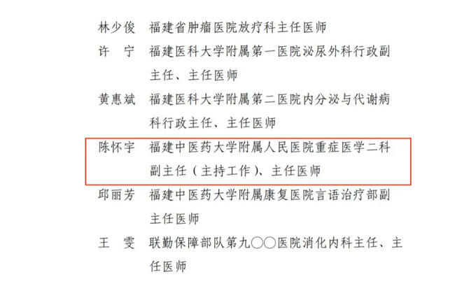 福建省中西醫(yī)結(jié)合學(xué)會(huì)重癥醫(yī)學(xué)分會(huì)常委、秘書;