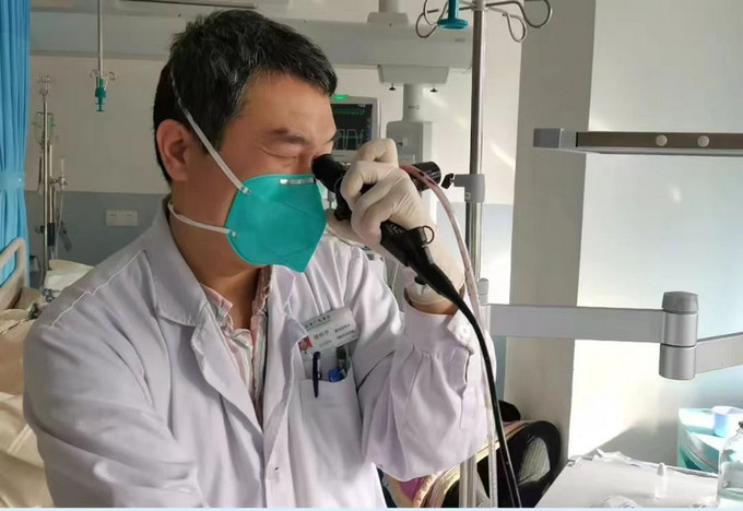陳懷宇在亞重癥病區(qū)為病人做氣管鏡治療