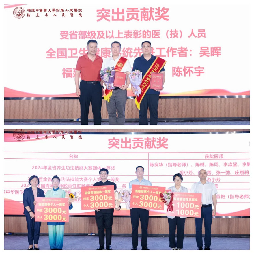 2024年以來,我院人才建設(shè)成效顯著,多人在各級(jí)行政部門、學(xué)會(huì)組織的活動(dòng)中斬獲佳績。急診科吳暉主任獲評(píng)全國衛(wèi)生健康系統(tǒng)先進(jìn)工作者,亞重癥病房陳懷宇主任當(dāng)選福建省“最美醫(yī)師”。此外,我院在全省養(yǎng)生功法技能大賽中奪得團(tuán)體和個(gè)人“雙冠軍”,肛腸科及檢驗(yàn)科人員也在各自??聘傎愔蝎@獎(jiǎng)。