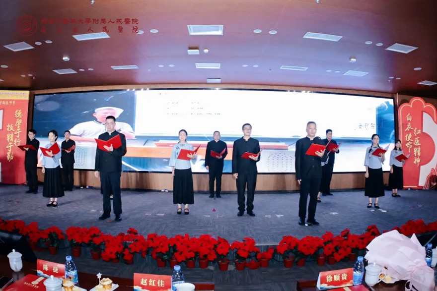 院黨委副書記、院長徐順貴為大會(huì)致辭。他向全體醫(yī)務(wù)人員致以節(jié)日的誠摯祝福,感謝大家在這個(gè)屬于醫(yī)者的特殊日子里,依然堅(jiān)守崗位、踐行使命,用專業(yè)與奉獻(xiàn)詮釋著對(duì)這份職業(yè)的熱愛與擔(dān)當(dāng)。他指出,全體醫(yī)務(wù)人員始終以“白衣使命”為燈塔,在救死扶傷的一線書寫著責(zé)任與擔(dān)當(dāng),這份堅(jiān)守值得充分肯定;同時(shí),他強(qiáng)調(diào)“紅醫(yī)精神”是醫(yī)院發(fā)展的根與魂,傳承好這份精神,既是對(duì)歷史的致敬,更是對(duì)未來的承諾。他立足行業(yè)發(fā)展大勢與醫(yī)院實(shí)際,為醫(yī)院在新時(shí)代的高質(zhì)量發(fā)展描繪了清晰藍(lán)圖,鼓勵(lì)全體同仁以更高站位、更寬視野投身醫(yī)療衛(wèi)生事業(yè),在守護(hù)人民健康的征程上再創(chuàng)佳績。