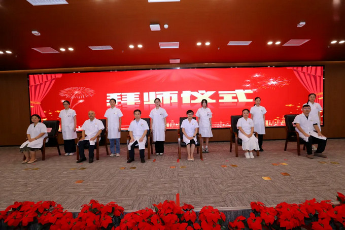 拜師儀式上,師生依次登臺(tái),敬上熱茶,行拜師之禮;老師以戒尺輕敲學(xué)生,訓(xùn)誡其守初心、擔(dān)使命、明尺度。茶香裊裊中,傳承岐黃薪火的誓言無(wú)聲流淌。