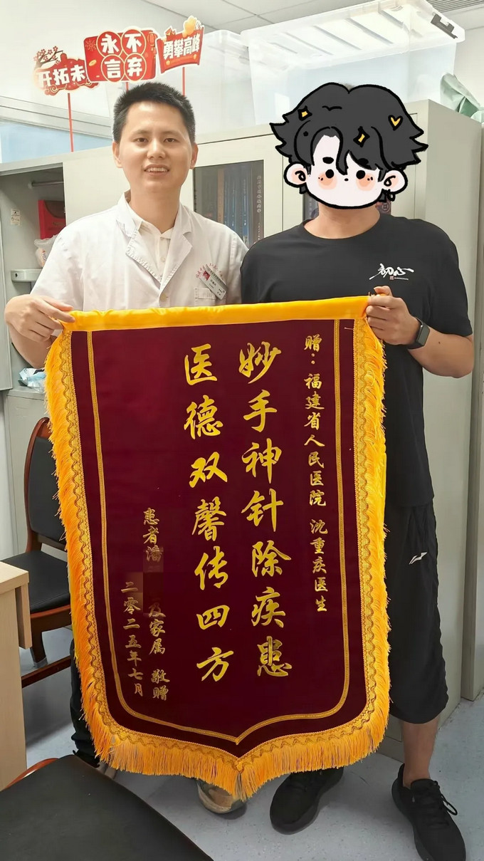 沈重慶也因此獲得職業(yè)生涯里患者贈(zèng)送的第一面錦旗——“拿捏乾坤 妙手回春”。