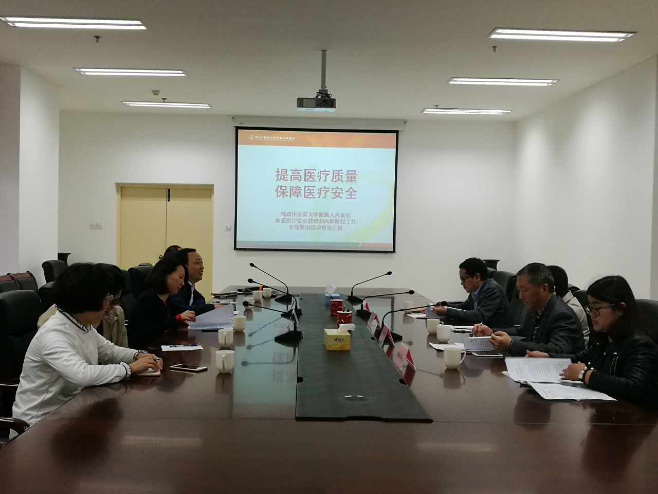 3月20日,我院接受了福建省衛(wèi)生計(jì)生委醫(yī)療安全管理和風(fēng)險(xiǎn)防控專項(xiàng)整治督查組的檢查。督查組專家由福建醫(yī)科大學(xué)附屬第一醫(yī)院林章雅副院長(zhǎng)、醫(yī)務(wù)部葉世岳主任、院感處劉豫瑞主任、以及中醫(yī)處謝評(píng)珠等專家組成,專家組對(duì)醫(yī)院的醫(yī)療質(zhì)量安全管理及風(fēng)險(xiǎn)防范專項(xiàng)整治活動(dòng)進(jìn)行了督導(dǎo)檢查。