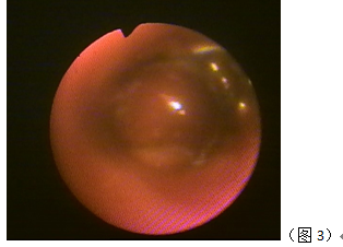 入院后完善纖維支氣管鏡檢查提示:左下肺后基底段a亞段支氣管開口狹窄,管腔內(nèi)可見一環(huán)形異物,表面覆蓋少量白色壞死物,管腔內(nèi)部大部分肉芽堵塞(圖3);因患者病史長達20余年,異物崁頓位置較深,周圍肉芽腫包饒明顯,治療起來相當棘手。