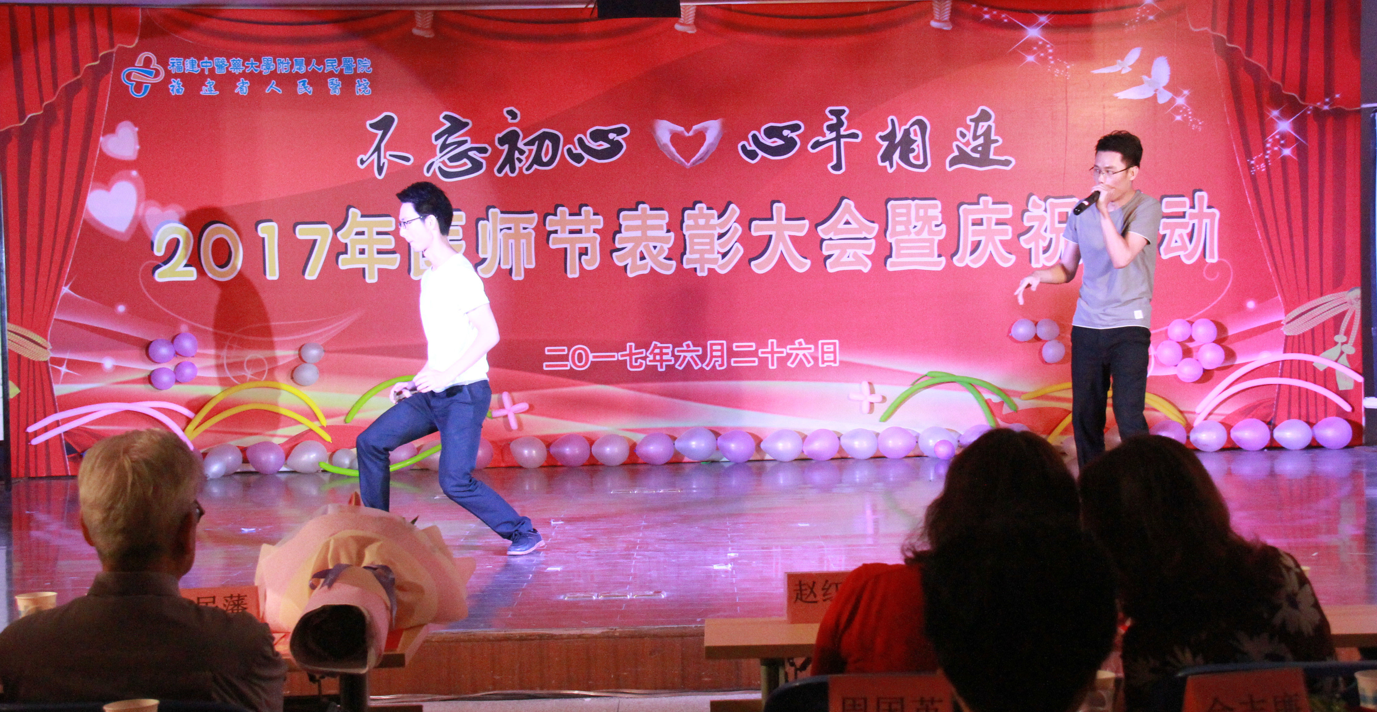 為度過(guò)一個(gè)歡慶的醫(yī)師節(jié),從而進(jìn)一步團(tuán)結(jié)凝聚全院醫(yī)師為醫(yī)院做出更大貢獻(xiàn),我院于626日醫(yī)師節(jié)來(lái)臨之際,舉辦“不忘初心 心手相連”2017年醫(yī)師節(jié)表彰大會(huì)暨文藝匯演。黨委書記、院長(zhǎng)趙紅佳,黨委副書記、紀(jì)委書記李藝華,副院長(zhǎng)文丹,副院長(zhǎng)程心玲,副院長(zhǎng)曾維銓以及全國(guó)名中醫(yī)陳民藩、吳熙、老專家代表出席表彰大會(huì),近300人觀看了本次文藝匯演。