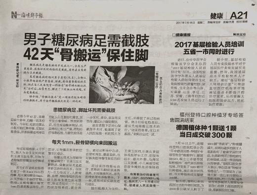【媒體看省人醫(yī)】海峽都市報(bào)報(bào)道我院骨科韓大為主任的“骨搬運(yùn)技術(shù)”