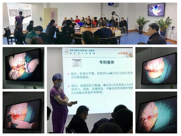 學習班采用現場手術演示及點評、學術專題講座和醫(yī)聯(lián)體協(xié)作交流等多種形式展開。會議期間共進行8臺手術演示,包括“高位肛瘺切開掛線術式”、 “混合痔套扎器套切術式”、“環(huán)狀混合痔痔上粘膜次環(huán)切(大C環(huán))術式”和排便障礙的手術治療等內容,充分展示肛腸??苽鞒屑皠?chuàng)新的手術理念和手術方法。專題講座部分涵蓋了肛周疾病、盆底疾病、炎癥性腸病等多病種的診療。肛周疾病方面,有河北省中醫(yī)院肛腸科主任高記華教授的“痔病與微創(chuàng)治療”、福建中醫(yī)藥大學附屬第二人民醫(yī)院葉玲教授的“中醫(yī)灌腸技術治療肛腸疾病”等報告分享;盆底疾病方面,有解放軍117醫(yī)院"大腸肛門病中心"主任魯明良教授的“3D-ERUS診斷肛周疾病的臨床研究”、我院戚婉主任的“盆底常見疾病的MRI診斷”、宮玉榕副主任的“超聲在肛腸疾病中的應用”等解讀;炎癥性腸病方面,有江蘇省中醫(yī)院谷云飛教授“如何提高肛周瘺管型CD的療效”和福建醫(yī)科大學附屬第一醫(yī)院范華副主任醫(yī)師的“TNF治療炎癥性腸病專家共識2017”等豐富的內容。另外,我院肛腸科石榮、王振飛主任團隊成員分別作了“肛腸病術后康復管理”、“大腸癌診療的最新熱點問題”、“妊娠期膿腫的治療策略”等5個專題報告,展示了近年來肛腸??频膶W術發(fā)展成果。我院醫(yī)聯(lián)體單位同仁龍巖市第二醫(yī)院李勝主任醫(yī)師、南平市人民醫(yī)院朱智宇副主任醫(yī)師等在會上作了3個相關專題學術報告。