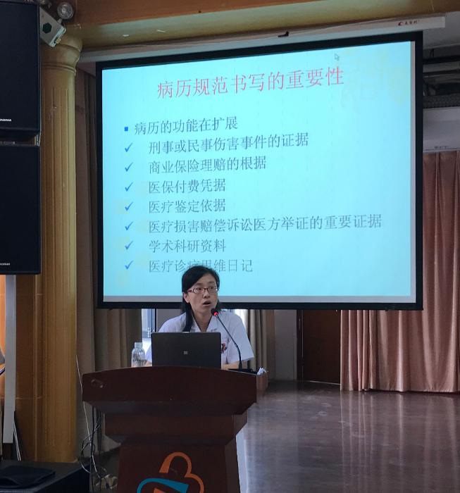 院感科張新安主任、教務(wù)科陳素副主任、質(zhì)控科張娟、醫(yī)務(wù)部陳周、信息科等則從醫(yī)療法律法規(guī)知識、院感防控、實(shí)習(xí)生臨床輪轉(zhuǎn)期間的教學(xué)實(shí)踐安排及實(shí)習(xí)計劃、病歷書寫、住院病歷系統(tǒng)使用方法等方面為同學(xué)們做了細(xì)致而又生動的闡述。