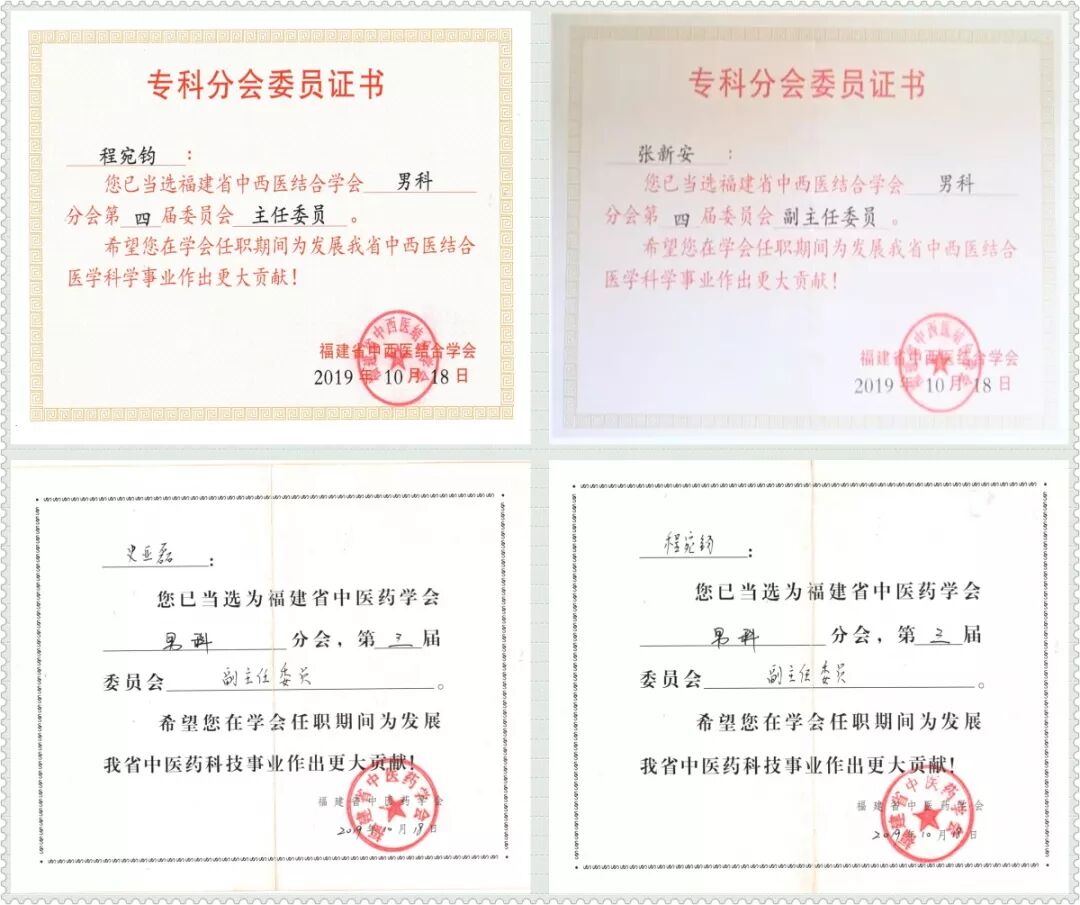 本次會議在18日晚間舉行了福建省中西醫(yī)結(jié)合學(xué)會男科分會第四屆委員會和福建中醫(yī)藥學(xué)會男科分會第三屆委員會選舉大會,福建省人民醫(yī)院張敏建教授受聘為福建省中西醫(yī)結(jié)合學(xué)會男科分會第四屆委員會首席顧問,男科程宛鈞副主任醫(yī)師當(dāng)選主任委員,張新安主任當(dāng)選副主任委員, 史亞磊副主任醫(yī)師當(dāng)選為常委。另外,程宛鈞和史亞磊兩位副主任醫(yī)師,還當(dāng)選為福建中醫(yī)藥學(xué)會男科分會第三屆委員會副主任委員。林勇及潘日潤兩位主治醫(yī)師當(dāng)選為福建中醫(yī)藥、中西醫(yī)結(jié)合學(xué)會男科分會委員,鄧日森醫(yī)師受聘為福建省中醫(yī)藥、中西醫(yī)結(jié)合學(xué)會男科分會秘書。