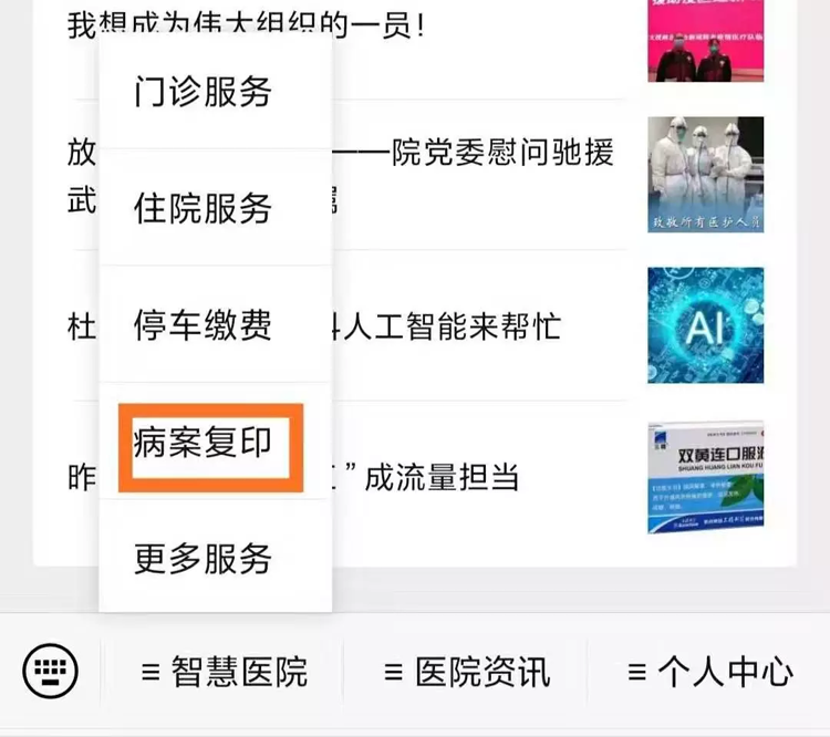 點(diǎn)擊“智慧醫(yī)院”,再點(diǎn)擊“病案復(fù)印”