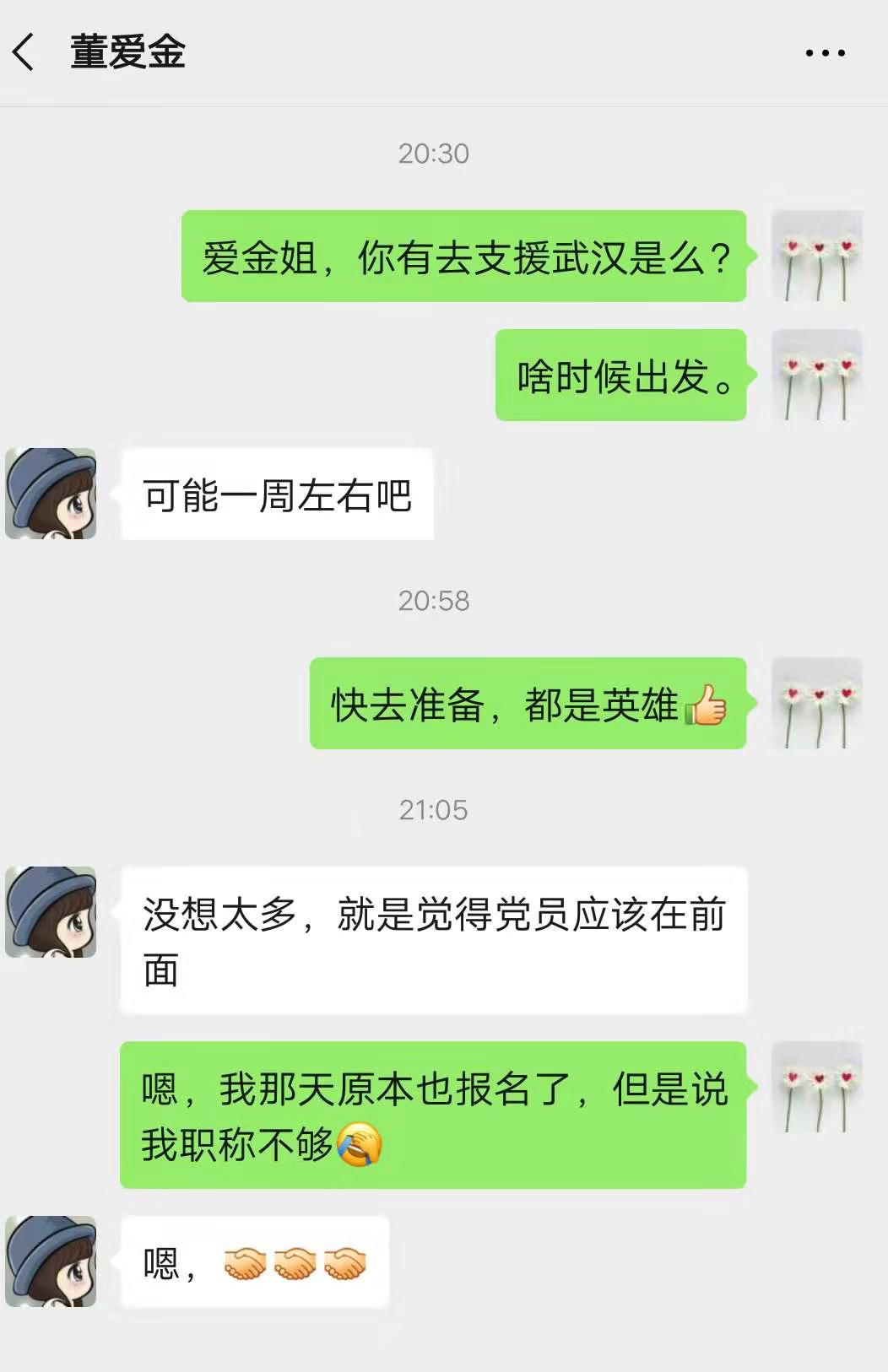 “領(lǐng)導(dǎo),我報(bào)名去武漢!”簡(jiǎn)單的8個(gè)字在這關(guān)鍵時(shí)刻如同窗外暖陽(yáng)給這個(gè)寒冷的冬天一個(gè)溫暖的擁抱。有著黨齡和工齡(12年)一樣長(zhǎng)的董愛(ài)金護(hù)士,開(kāi)朗直率。在湖北疫情牽動(dòng)全體醫(yī)務(wù)人員的心時(shí),當(dāng)她獲到醫(yī)院黨委發(fā)出馳援湖北武漢的通知后,她毫不猶豫地報(bào)名參戰(zhàn)。在明知兩個(gè)年幼的孩子,除了愛(ài)人就沒(méi)有其他人可以幫忙照顧的情況下,她依然義無(wú)反顧地請(qǐng)戰(zhàn),和家里人來(lái)個(gè)了“先斬后奏”。愛(ài)人得知后雖然內(nèi)心為妻子的此趟出行擔(dān)心,但還是給予了極大的支持,讓她沒(méi)有后顧之憂的前往一線支援。