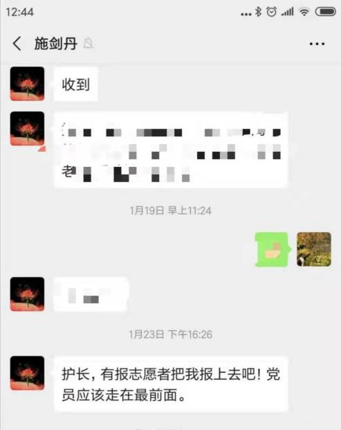 她叫施劍丹,外科病房護(hù)理骨干,長(zhǎng)期任重癥監(jiān)護(hù)室責(zé)任護(hù)士,多次獲得優(yōu)質(zhì)護(hù)理標(biāo)兵。工作中施劍丹有苦有難都自己頂上,從無(wú)半句怨言。此次疫情當(dāng)前,她克服家庭的困難,放下兩個(gè)依然年幼的娃(一個(gè)四歲,一個(gè)只有一歲多),主動(dòng)擔(dān)當(dāng),申請(qǐng)馳援武漢,她說(shuō),“我是一名護(hù)士,也是一名老師,我要用我的行動(dòng)帶領(lǐng)我的學(xué)生們,讓她們知道我們作為一名護(hù)士,救死扶傷的先行者,必須要有自己的職責(zé)與擔(dān)當(dāng)。我在ICU進(jìn)修過(guò),回到科室又長(zhǎng)期任重癥監(jiān)護(hù)室的責(zé)任護(hù)士,對(duì)于重癥病人的護(hù)理我還是比較熟練的,而且我還是一名黨員就應(yīng)該走在前面,這樣的局勢(shì),不能當(dāng)逃兵。我報(bào)名!”