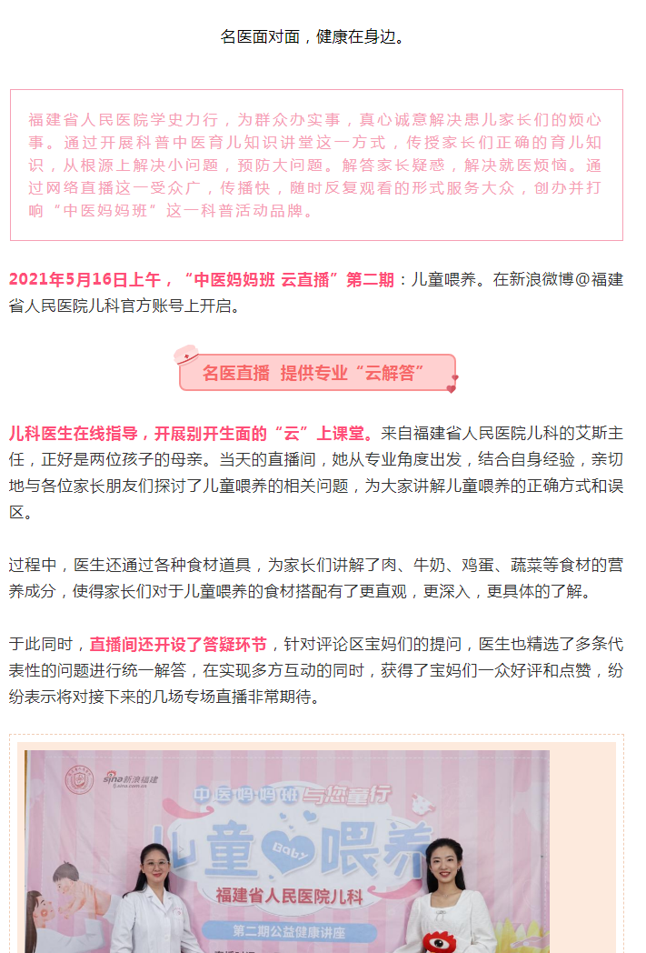 兒童保健|中醫(yī)媽媽班 與您童行 福建省人民醫(yī)院健康科普“云直播”第二期開播啦