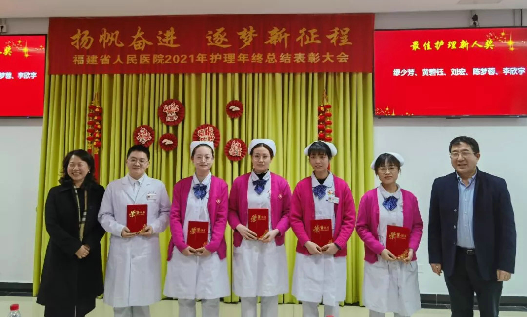 趙紅佳書記、陳捷院長為“2021年度最佳護理新人獎”:繆少芳、黃碧鈺、劉宏、陳夢蓉、李欣宇頒發(fā)證書